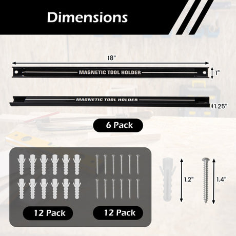 18 Inch Magnetic Tool Holder Strip with Mounting Screws-Black