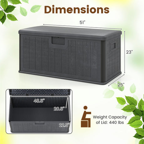 100 Gallon Resin Deck Box Outdoor Waterproof Storage Bench-Black