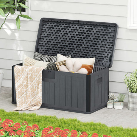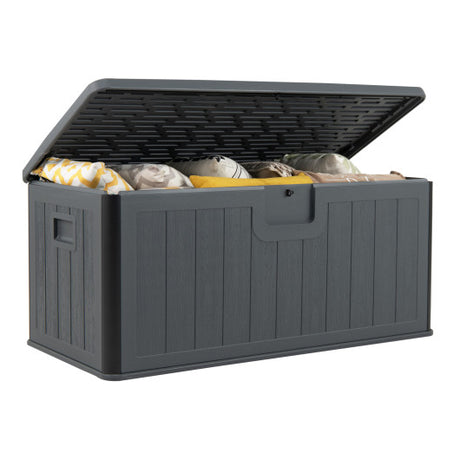 100 Gallon Resin Deck Box Outdoor Waterproof Storage Bench-Gray