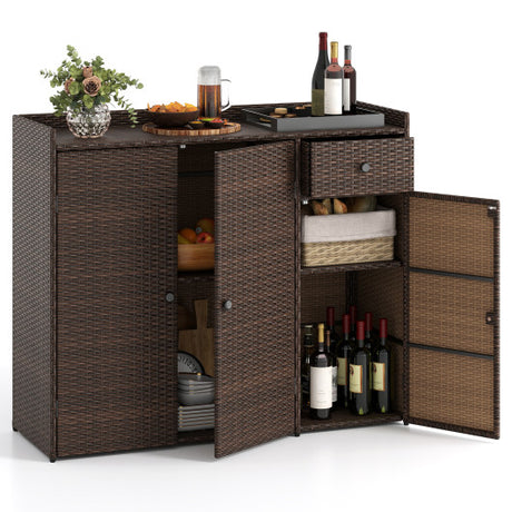 Outdoor PE Wicker Storage Cabinet with 3 Doors for Deck