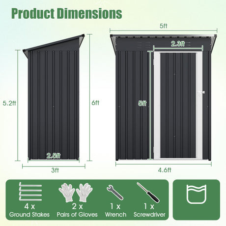 5 x 3 Feet Outdoor Storage Shed with Sloped Roof and Lockable Door-Gray