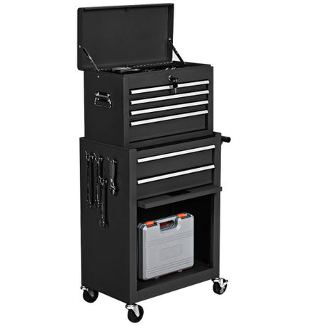 2-in-1 Tool Chest and Cabinet with 5 Sliding Drawers-Black