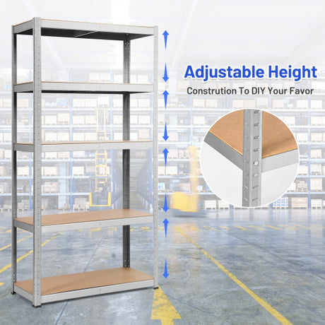 71 inch Heavy Duty Steel Adjustable 5 Level Storage Shelves-Gray