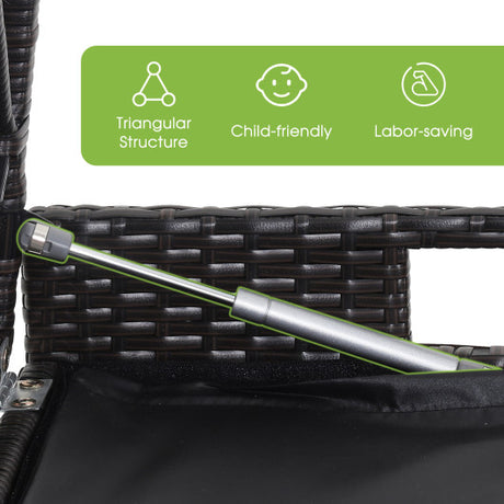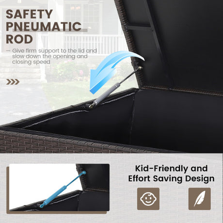 72 Gallon Rattan Outdoor Storage Box with Zippered Liner and Solid Pneumatic Rod