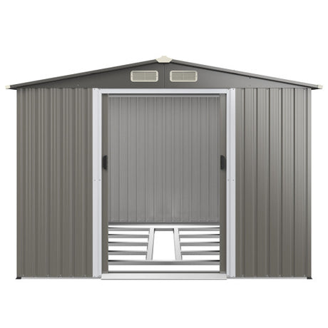 8 x 6 Feet Galvanized Steel Storage Shed for Garden Yard-Gray