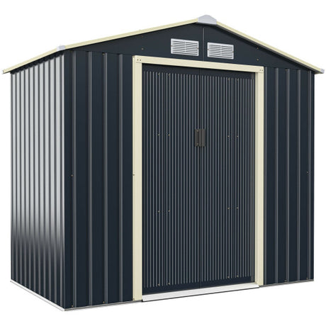 7 Feet x 4 Feet Metal Storage Shed with Sliding Double Lockable Doors-Gray