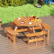 ● Comes with a round picnic table and 4 built-in benches ideal for 2-8 people
