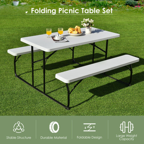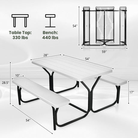 Indoor and Outdoor Folding Picnic Table Bench Set with Wood-like Texture-White