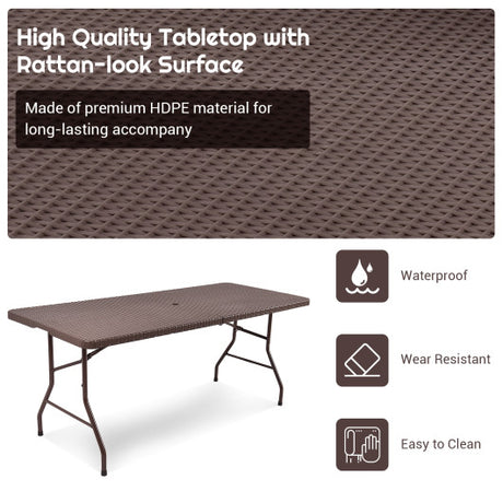 6 Feet Folding Portable Rattan Table with Carrying Handle