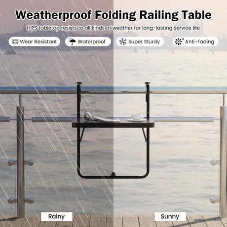 Folding Hanging Table with 3-Level Adjustable Height for Patio Balcony-Black