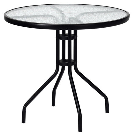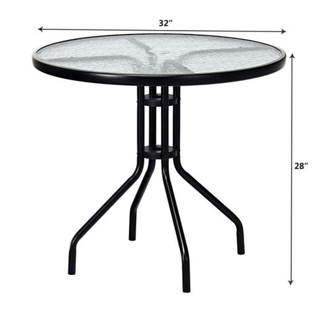 32 Inch Outdoor Patio Round Tempered Glass Top Table with Umbrella Hole