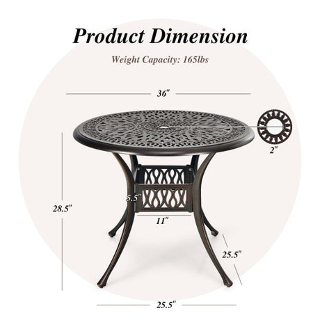 36 Inch Patio Round Dining Bistro Table with Umbrella Hole-Brown