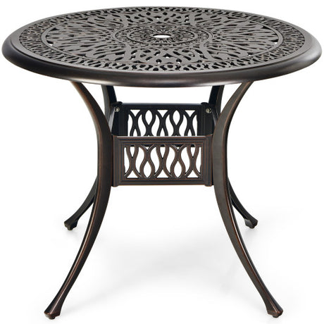 35.4 Inch Aluminum Patio Square Dining Table with Umbrella Hole-Bronze