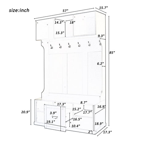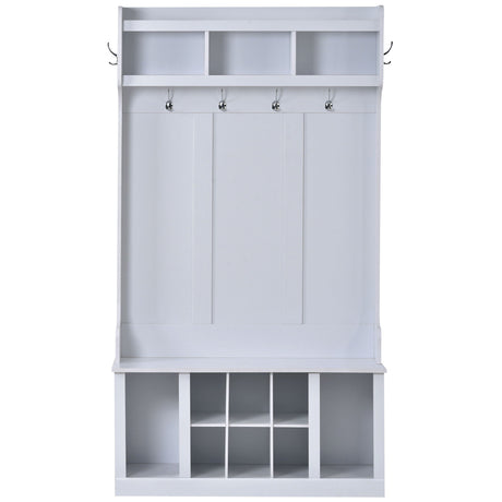 4-Tier Coat Rack Corner Hall Tree with Shoe Storage Bench-White