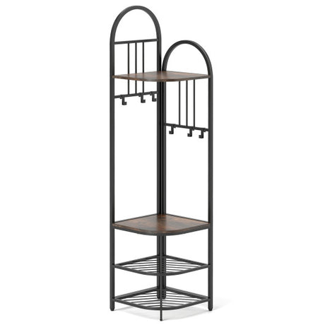 4-Tier Coat Rack Corner Hall Tree with Shoe Storage Bench-Rustic Brown