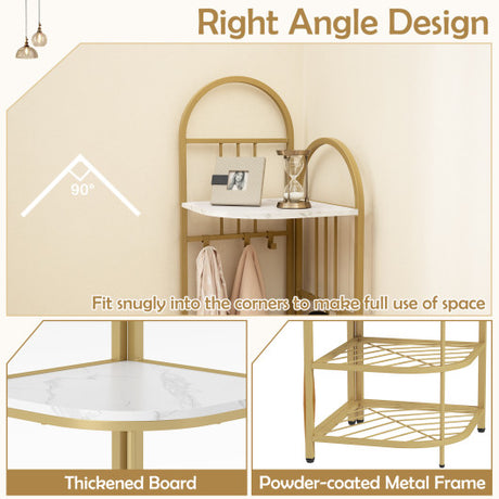 Corner Coat Rack with Top Hanger and 2 Mesh Shelves for Entryway Hallway Living Room Bedroom-Golden
