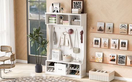 In stock4-In-1 Hall Tree with Coat Rack and Flip Drawers for Entryway Mudroom-White
