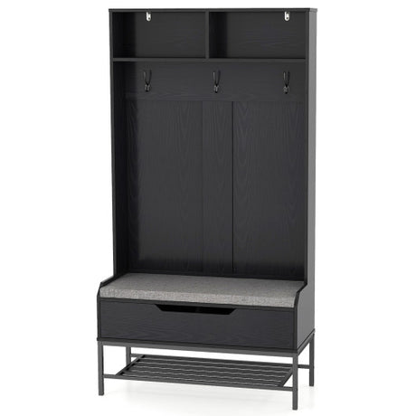 69 Inches Tall Hall Tree 4-in-1 Coat Rack with Seat Cushion and Shoe Storage-Black