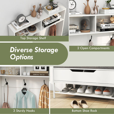 69 Inches Tall Hall Tree 4-in-1 Coat Rack with Seat Cushion and Shoe Storage-White