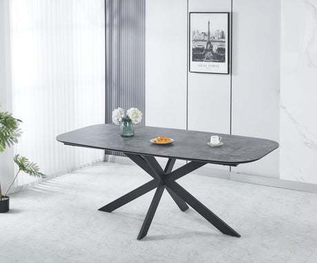 Modern Dining Table, MDF With Paper Finish, Metal Leg Powder Coating - Gray / Black by Couch.com