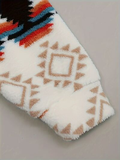 Modern Women Geometric Zip-Up Sherpa Jacket With Hood And Pockets Stylish Winter Jacket