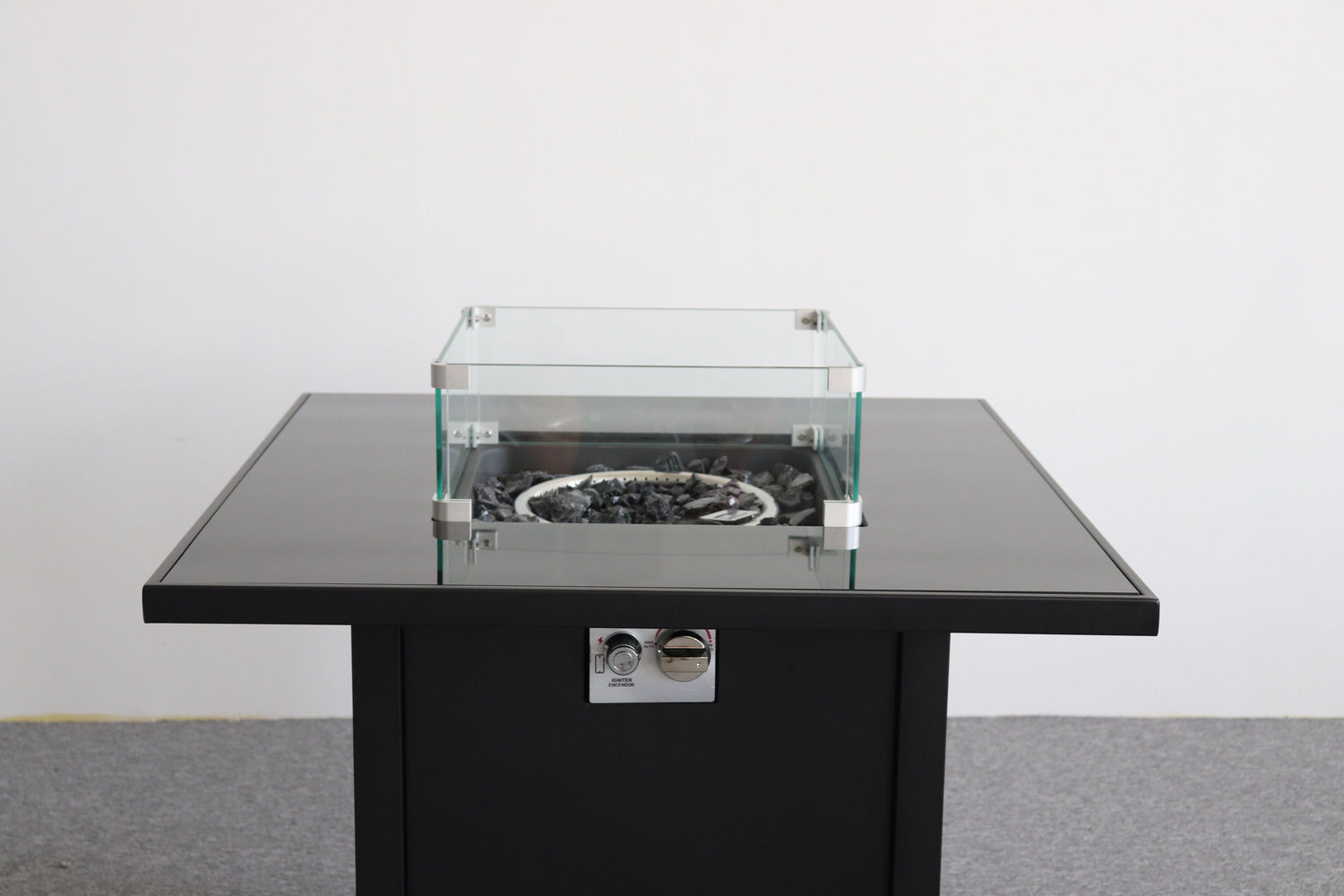 - High Heat Output: Operating at 40,000 BTU, this fire pit provides ample warmth, making it suitable for year-round outdoor use. It includes a smoked glass heat-resistant top and a glass windshield for added safety and style.
