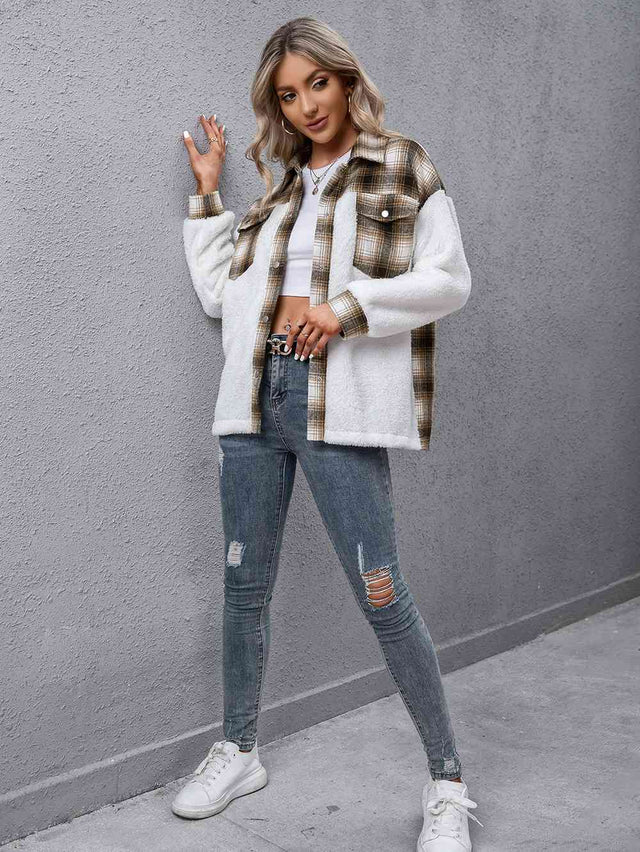 Timeless Modern Plaid Collared Neck Button Down Jacket Casual Simple Jacket For Women Classic Jacket