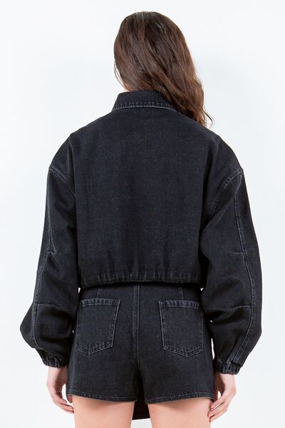 Women Black American Bazi Drawstring Waist Crop Girls Jacket For Women Stylish And Adjustable Trucker Jacket
