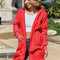 Beautiful Red Women Drop Shoulder Fuzzy Button-Up Jacket Soft And Comfortable Casual Fit Jacket