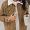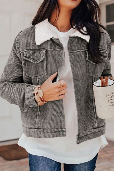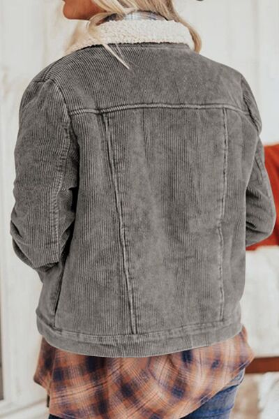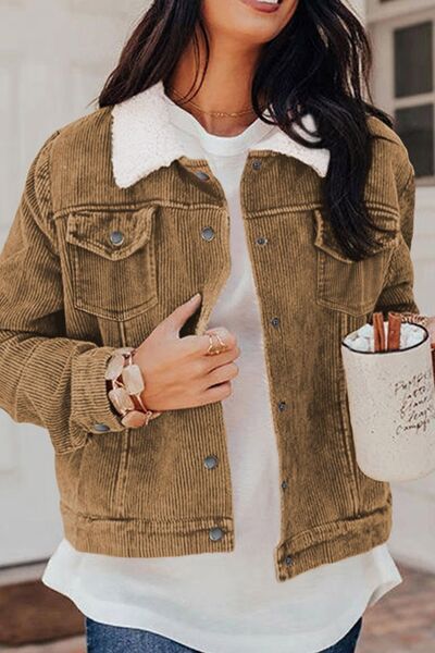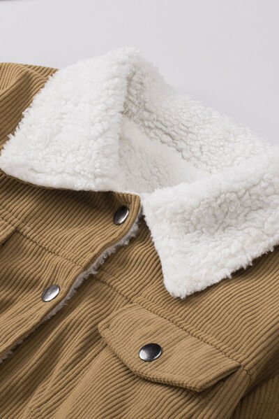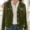 Vintage Women Winter Corduroy Snap Down Jacket With Collared Neck and Plush Lining
