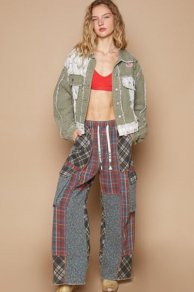 Classic Artistic Crochet Patch Exposed Seam Button Up Jacket Chic & Edgy Outerwear