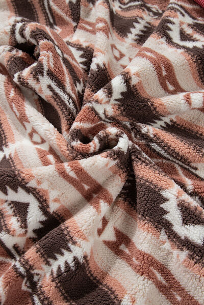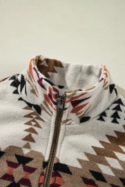 Modern Women Geometric Zip-Up Sherpa Jacket With Hood And Pockets Stylish Winter Jacket