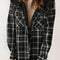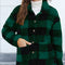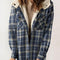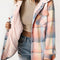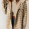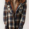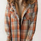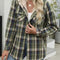 Plaid Snap Down Plush Hooded Jacket Soft & Warm Women Outerwear Cozy And Comfortable Jacket