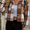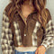 Women Brown Plaid Collared Neck Cropped Jacket Trendy & Versatile Outerwear