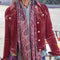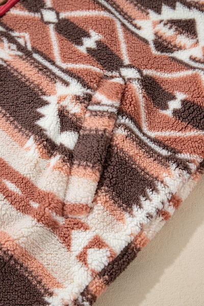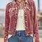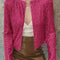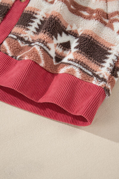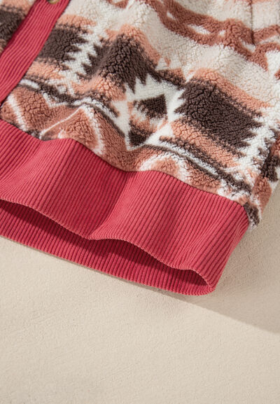 Retro Unique Geometric Print Corduroy Trim Button-Up Jacket Classic Modern Deep Rose Jacket