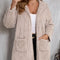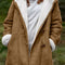 Beige Long Winter Open Front Long Sleeve Fuzzy Hooded Jacket Cozy & Stylish Outerwear