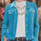 Retro Embroidered Patchwork Vintage Button Up Jacket Outdoor Modern Style Jacket For Girls