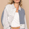 Unique Contrast Collared Pocketed Jacket with Button-Up Closure Modern Women Jacket