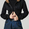 Black Fuzzy Hem Hooded Zip-Up Jacket With Long Sleeves and Casual Style Jacket