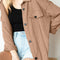 Retro Camel Full Size Drop Shoulder Jacket With Button-Up Design Women Jacket