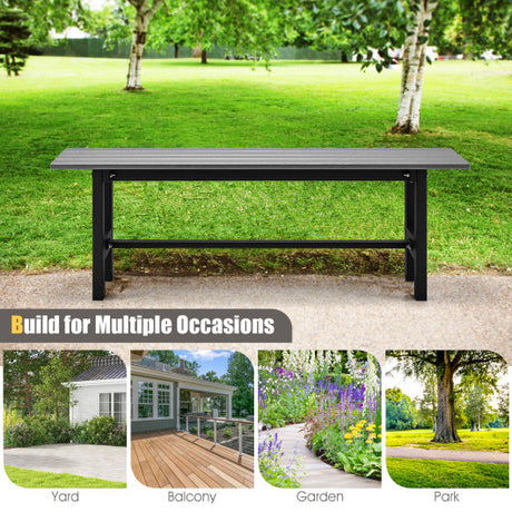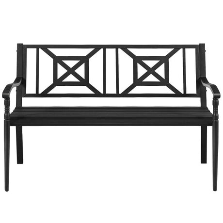 47" Outdoor Chair with Slatted Seat Plastic Coated Iron Frame-Black