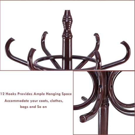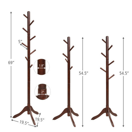 Adjustable Wooden Tree Coat Rack with 8 Hooks-Brown