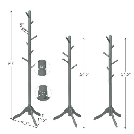 Adjustable Wooden Tree Coat Rack with 8 Hooks-Gray