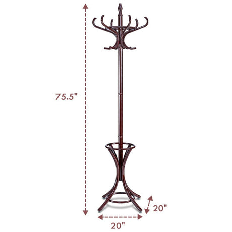 Wood Standing Hat Coat Rack with Umbrella Stand-Brown