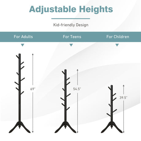 Adjustable Wooden Tree Coat Rack with 8 Hooks-Black
