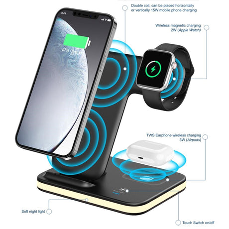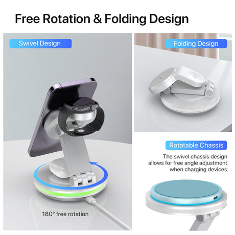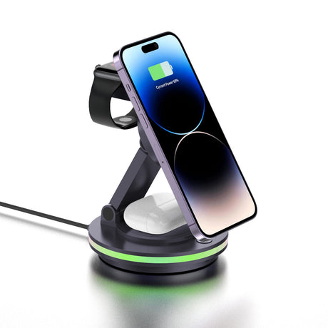 3-in-1 Magnetic Wireless Charger Pad Stand - Fast Wireless Charging Dock Station