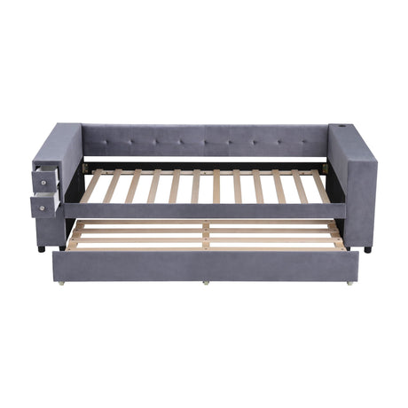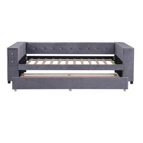 Upholstered Bed With Storage And Twin Trundle, USB Charging Ports by Couch.com