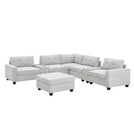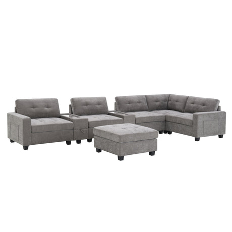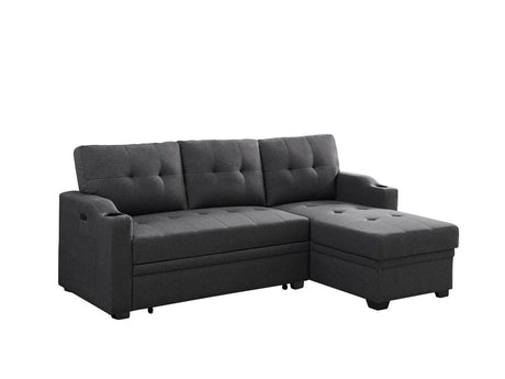 Mabel - Linen Fabric Sleeper Sectional With Cupholder, USB Charging Port And Pocket by Couch.com