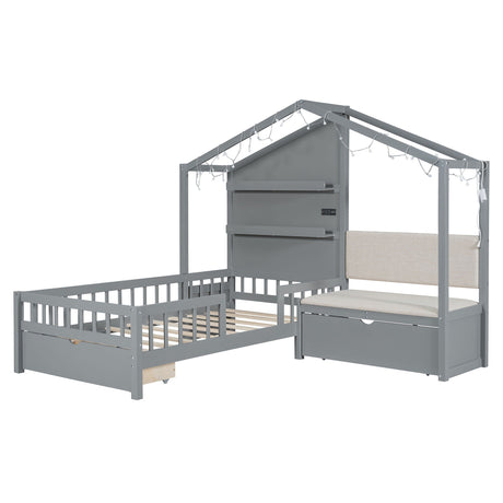 House Bed With Upholstered Sofa, Wireless Charging Station, Shelves And 2 Drawers by Couch.com