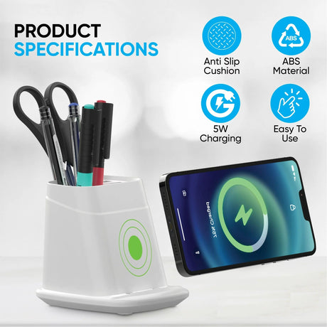 Wireless Charging Stand with Dual USB Charger & Desk Organizer by Infinite Basics
